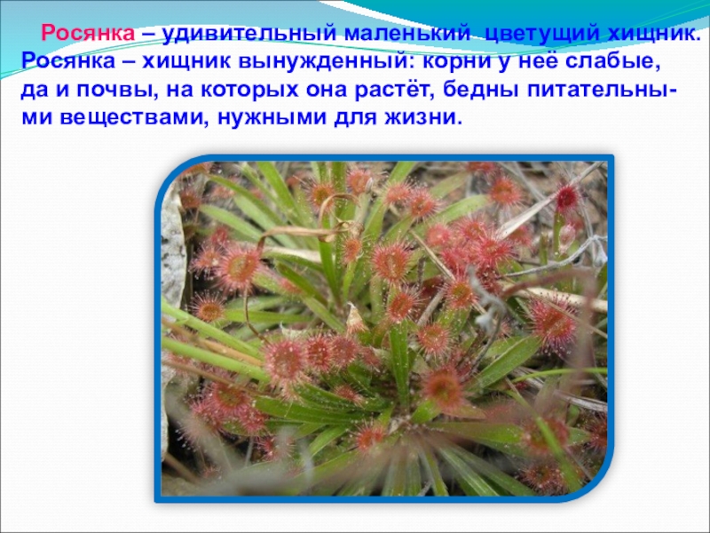 Слайд 4 Росянка – удивительный маленький цветущий хищник.