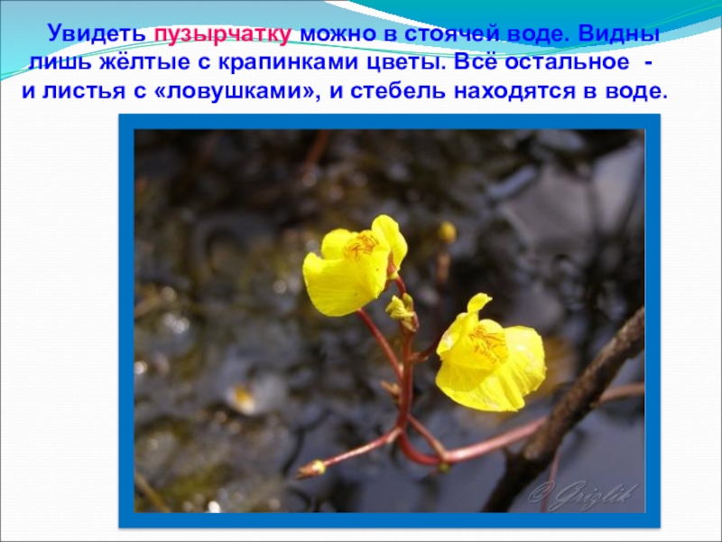Слайд 18 Увидеть пузырчатку можно в стоячей воде. Видны