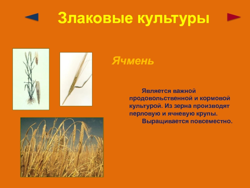 Слайд 27Злаковые культуры