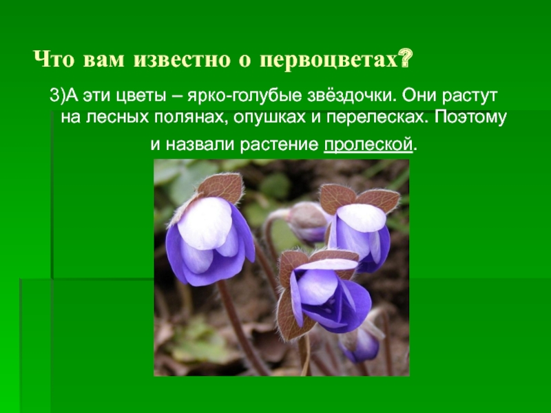 Слайд 13Что вам известно о первоцветах?