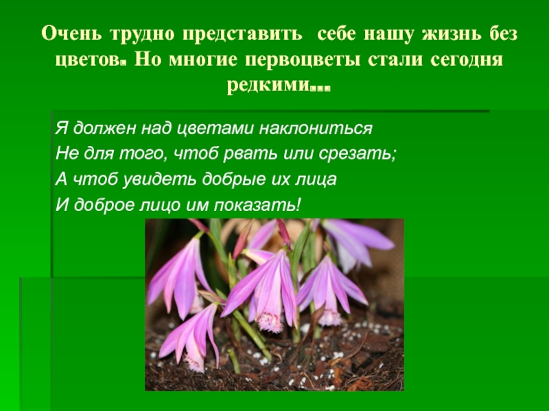 Слайд 20Очень трудно представить себе нашу жизнь без цветов. Но многие первоцветы