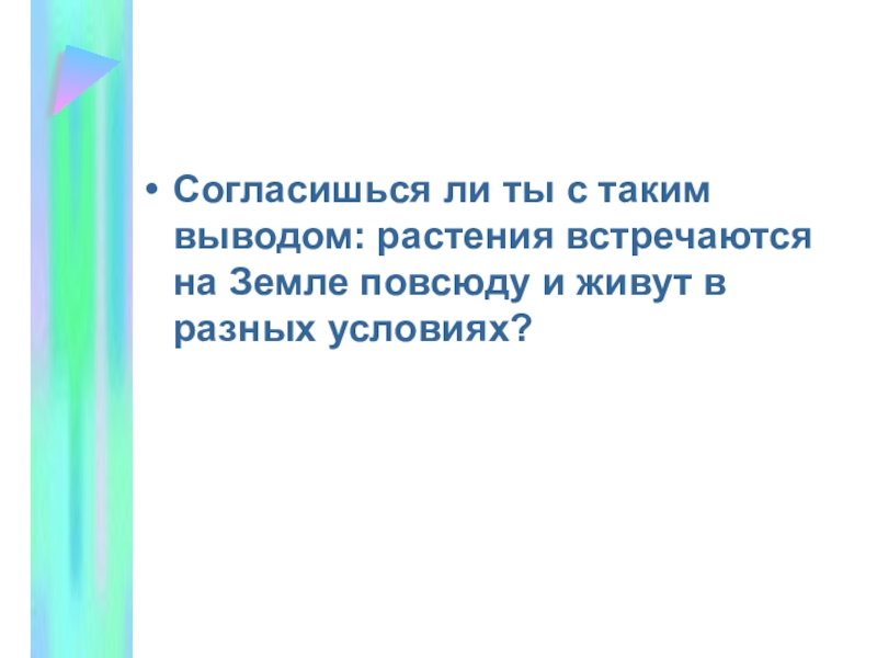 Слайд 10Согласишься ли ты с таким выводом: растения встречаются на Земле повсюду