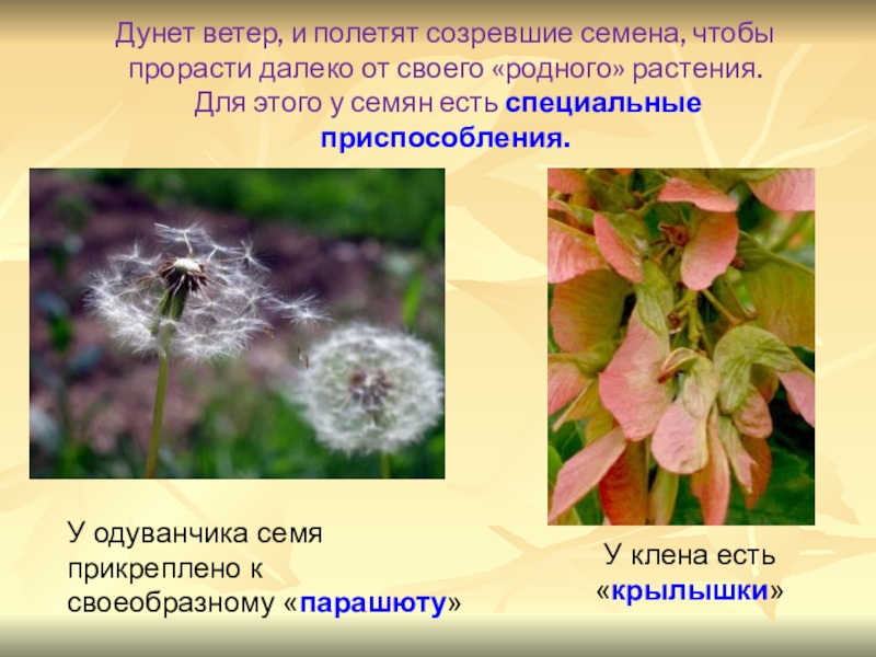 У одуванчика семя прикреплено к своеобразному «парашюту»