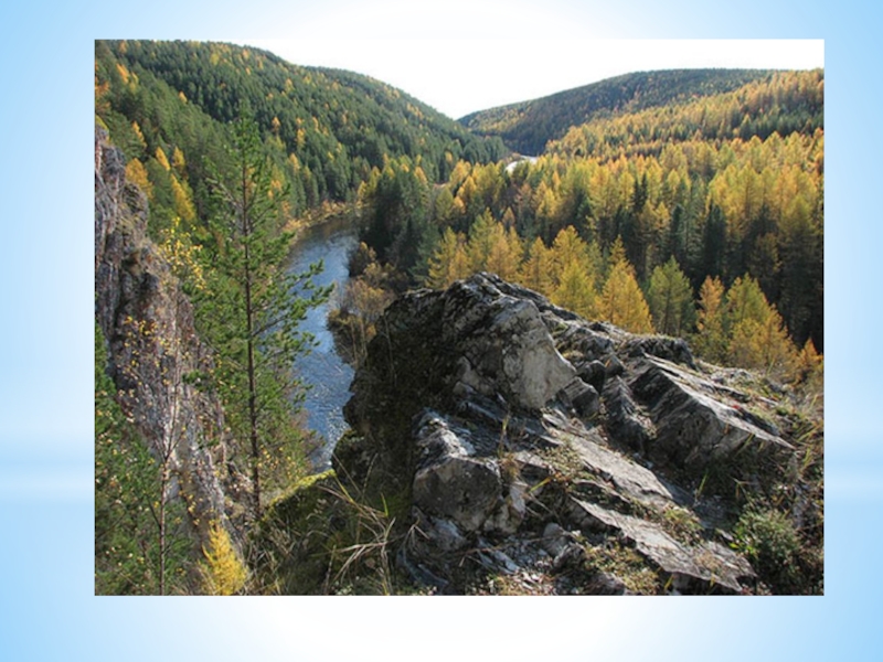 Слайд 2На живописных склонах Южного Урала, среди лесистых гор, холмов и низменных