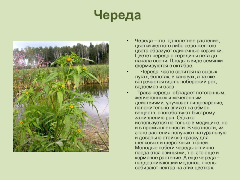 Череда – это однолетнее растение, цветки желтого либо серо-желтого цвета