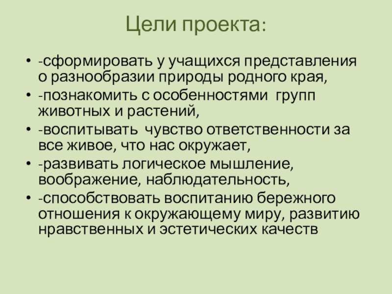-сформировать у учащихся представления о разнообразии природы родного края,
