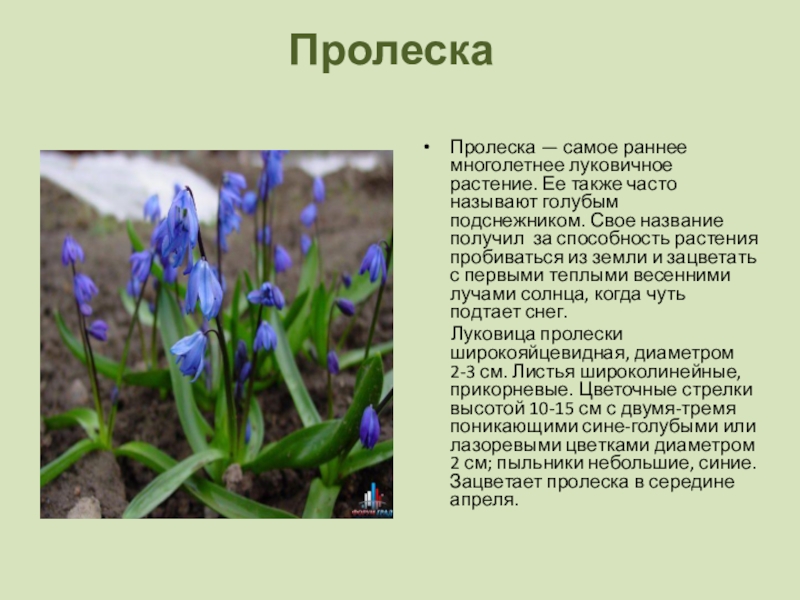 Пролеска — самое раннее многолетнее луковичное растение. Ее также часто