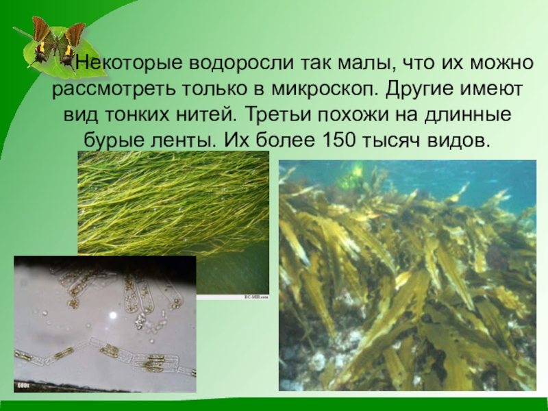 Слайд 5 Некоторые водоросли так малы, что их можно рассмотреть только в