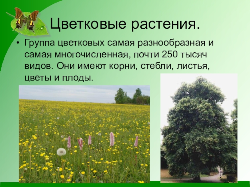 Группа цветковых самая разнообразная и самая многочисленная, почти 250 тысяч