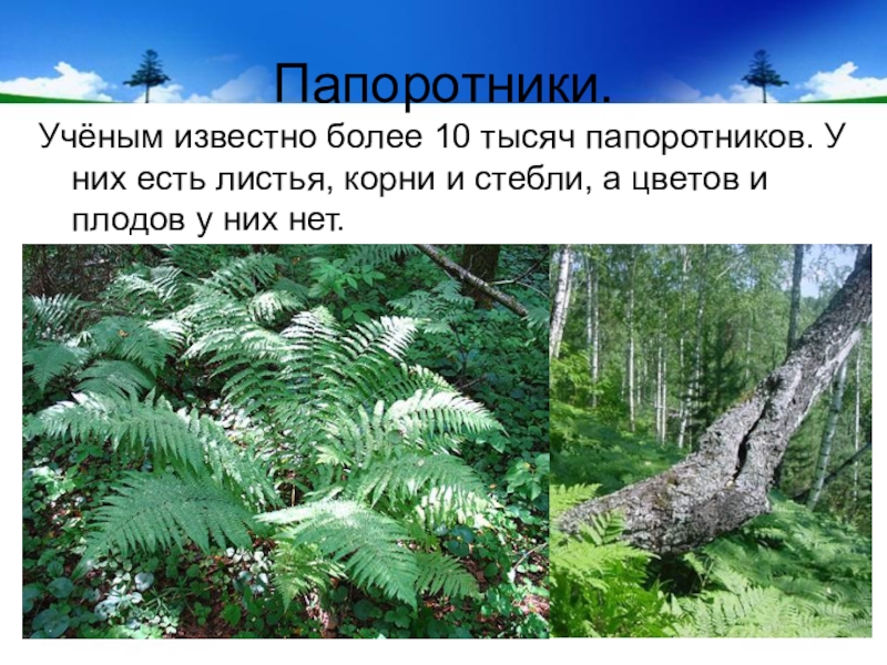 Учёным известно более 10 тысяч папоротников. У них есть листья, корни