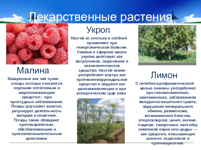 жаропонижающим средство:: -при простудных заболеваниях. Плоды улучшают аппетит, регулирует деятельность желудка и кишечник. Плоды также обладают противорвотным, обезболивающим и противовоспалительным действием.