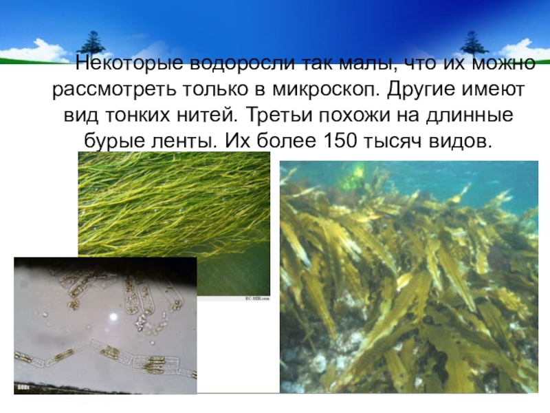 Слайд 28 Некоторые водоросли так малы, что их можно рассмотреть только в