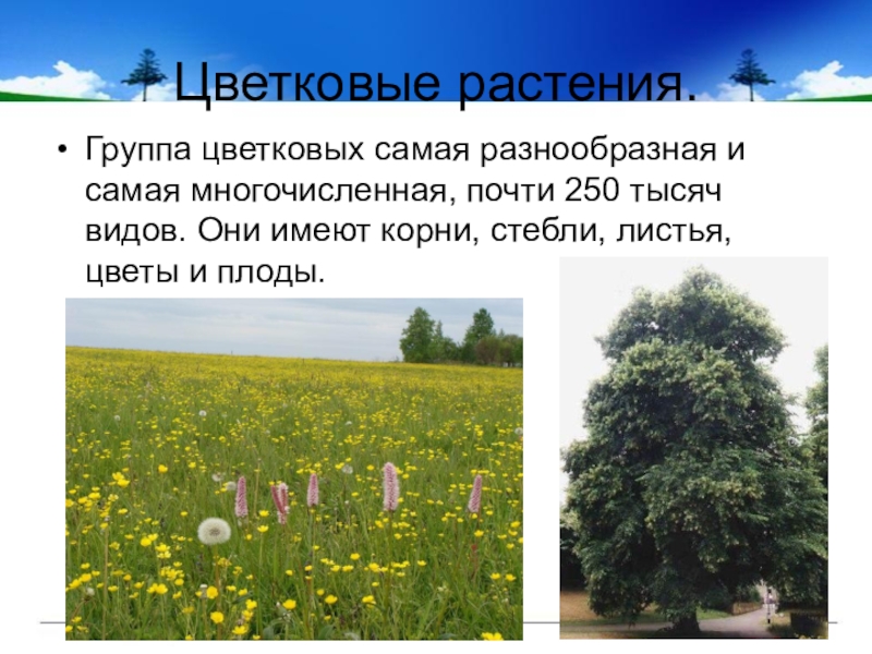 Группа цветковых самая разнообразная и самая многочисленная, почти 250 тысяч