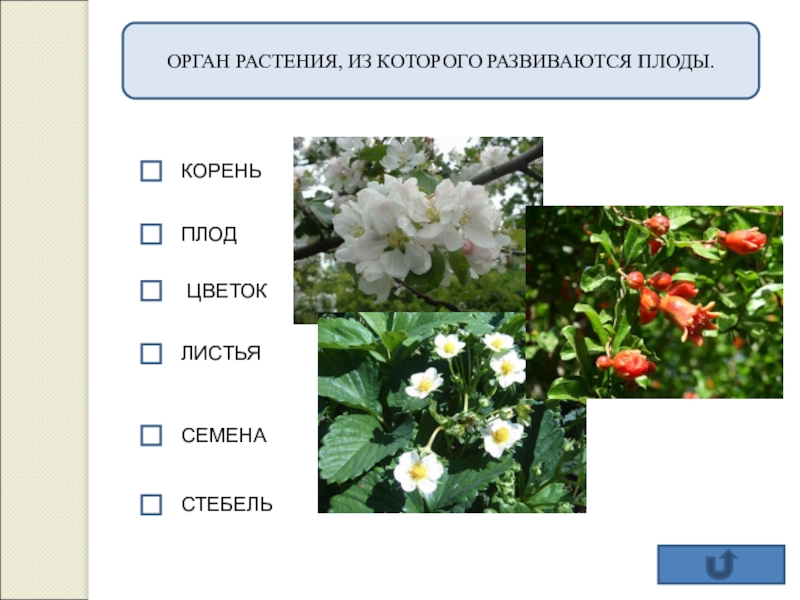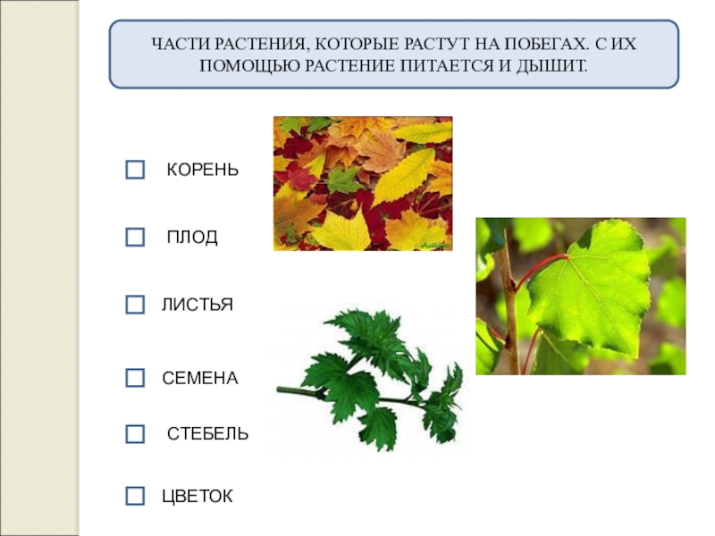 Растения, которые размножаются спорами, имеют корень стебель и листья.