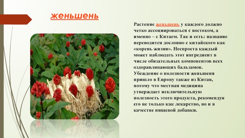 Слайд 6женьшень