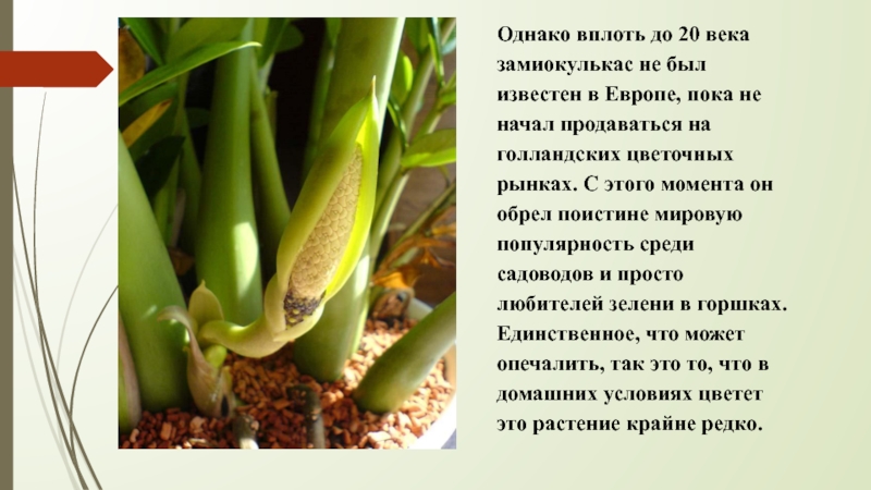 Слайд 11Однако вплоть до 20 века замиокулькас не был известен в Европе,
