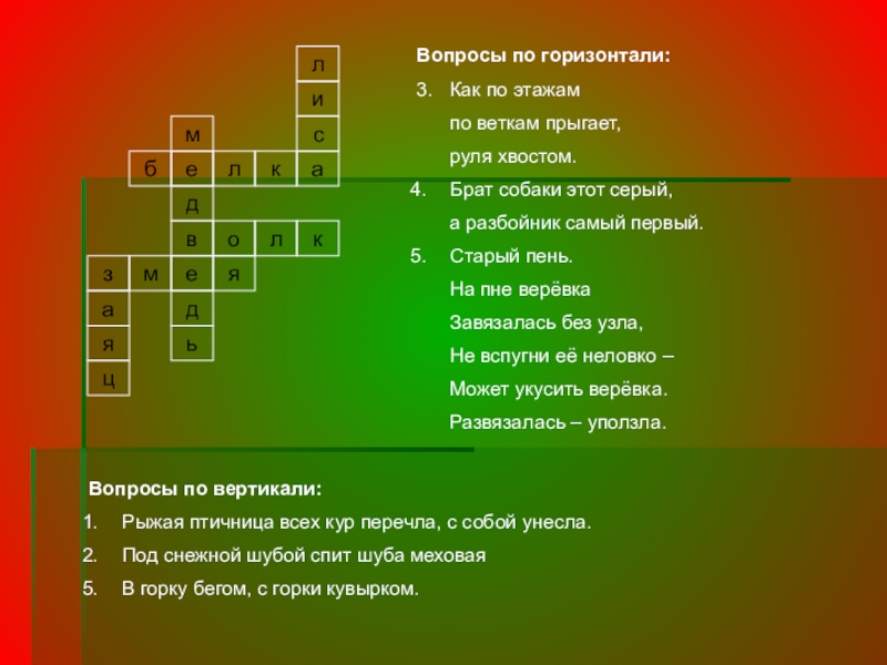Вопросы по вертикали: