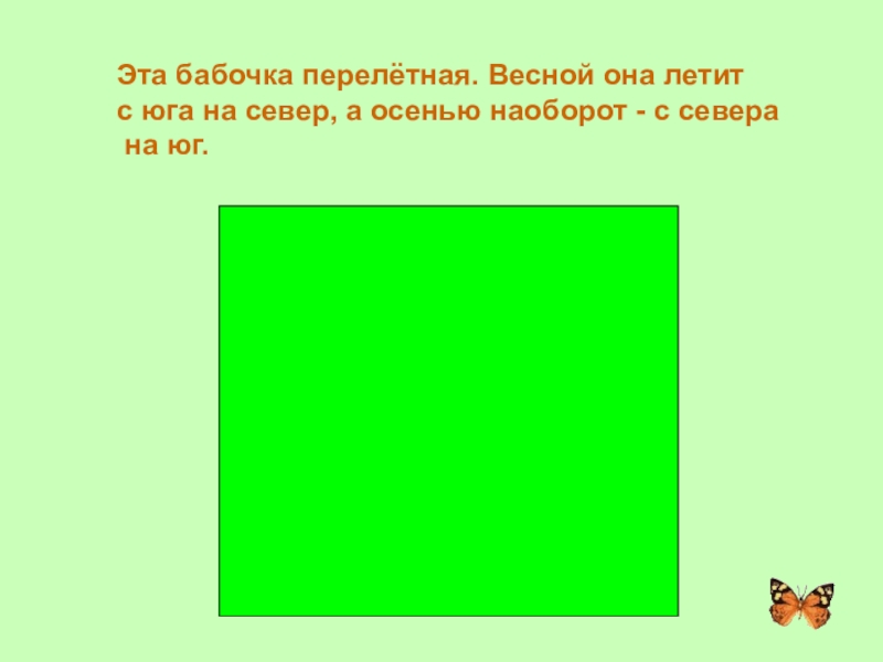 АДМИРАЛЭта бабочка перелётная. Весной она летит с юга на север, а осенью наоборот - с севера на юг.