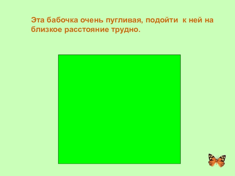 Слайд 3Эта бабочка очень пугливая, подойти к ней на
