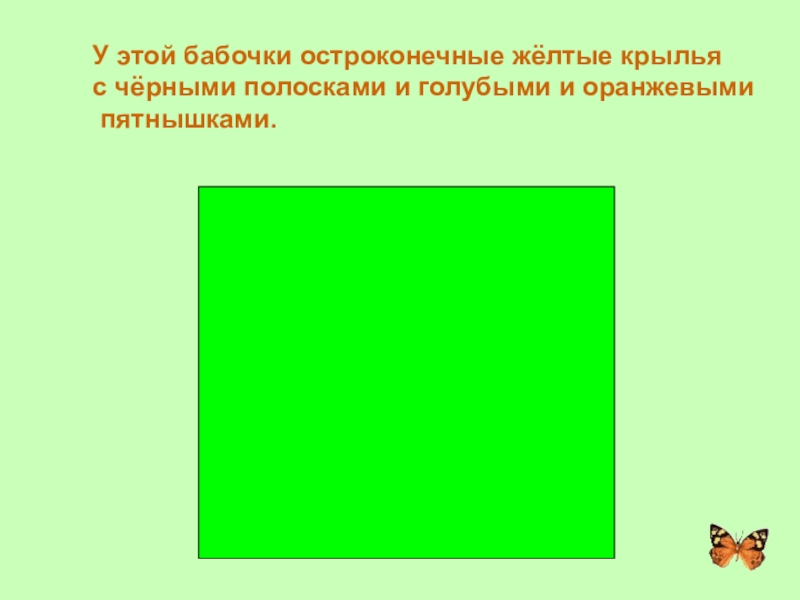 Слайд 6У этой бабочки остроконечные жёлтые крылья