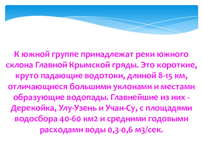Слайд 8К южной группе принадлежат реки южного склона Главной Крымской гряды. Это