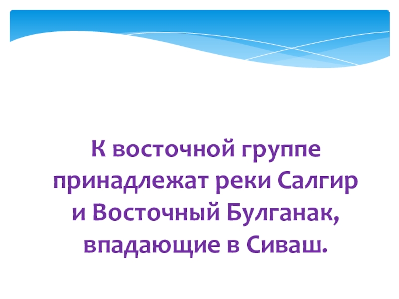 Слайд 25К восточной группе принадлежат pеки Салгир и Восточный Булганак, впадающие в