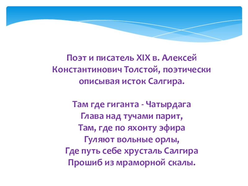 Слайд 27Поэт и писатель XIX в. Алексей Константинович Толстой, поэтически описывая исток