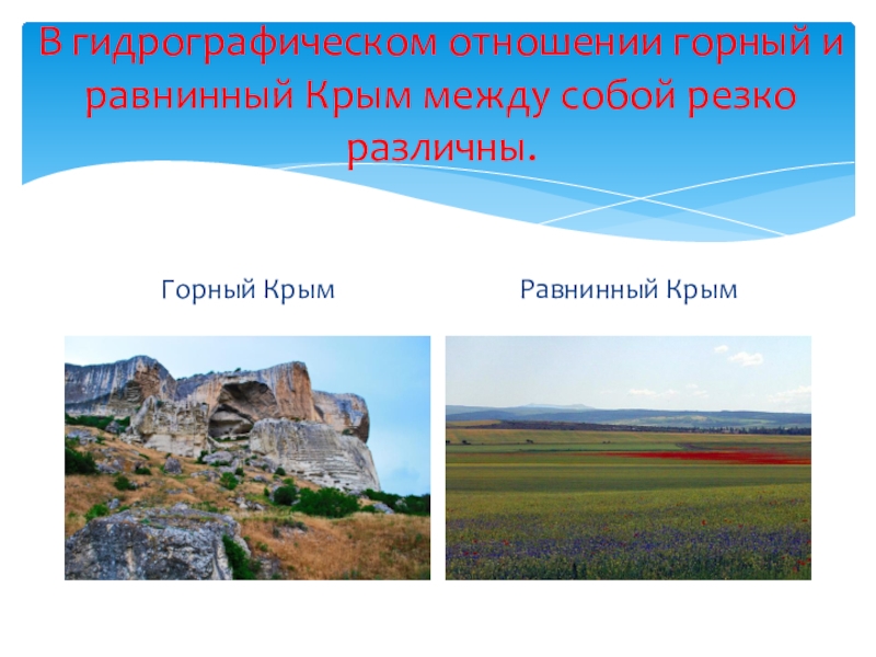 Слайд 5В гидрографическом отношении горный и равнинный Крым между собой резко различны.