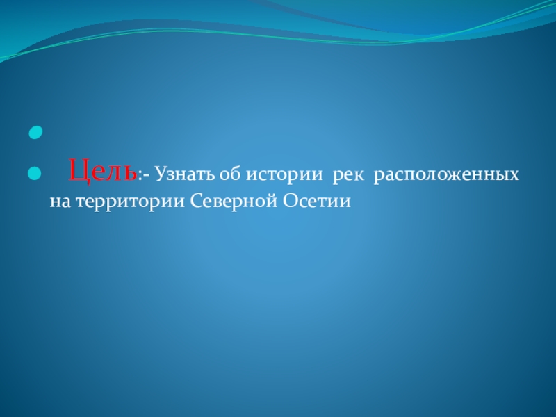 Цель:- Узнать об истории рек расположенных на территории Северной Осетии