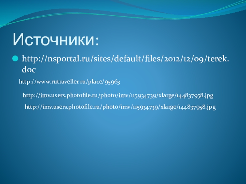 Источники:http://nsportal.ru/sites/default/files/2012/12/09/terek.dochttp://www.rutraveller.ru/place/95963http://imv.users.photofile.ru/photo/imv/115934739/xlarge/144837958.jpghttp://imv.users.photofile.ru/photo/imv/115934739/xlarge/144837958.jpg