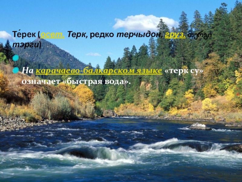 Слайд 12 Те́рек (осет. Терк, редко терчыдон, груз. თერგი тэрги)