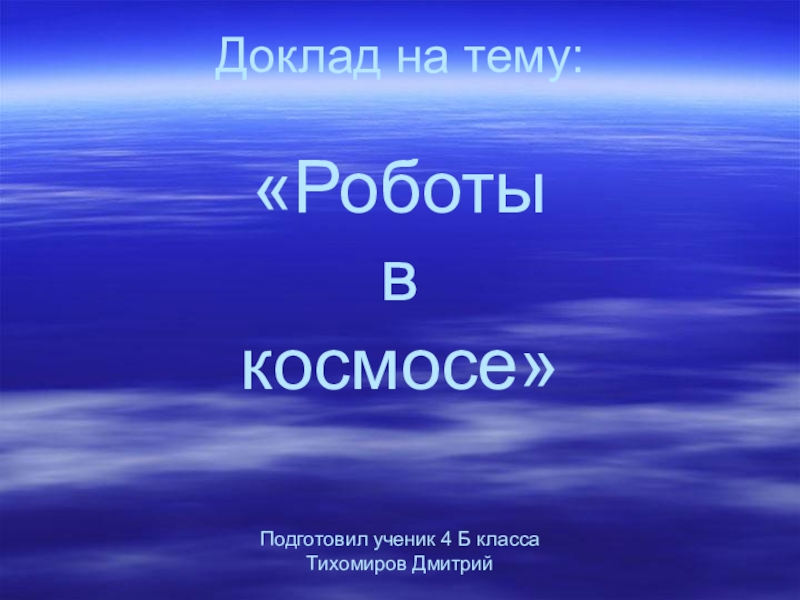 Слайд 1Доклад на тему: «Роботы в космосе» Подготовил ученик 4 Б класса Тихомиров Дмитрий