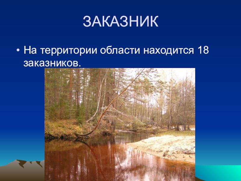 ЗАКАЗНИКНа территории области находится 18 заказников.