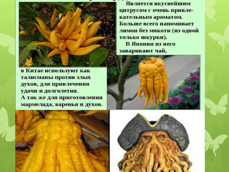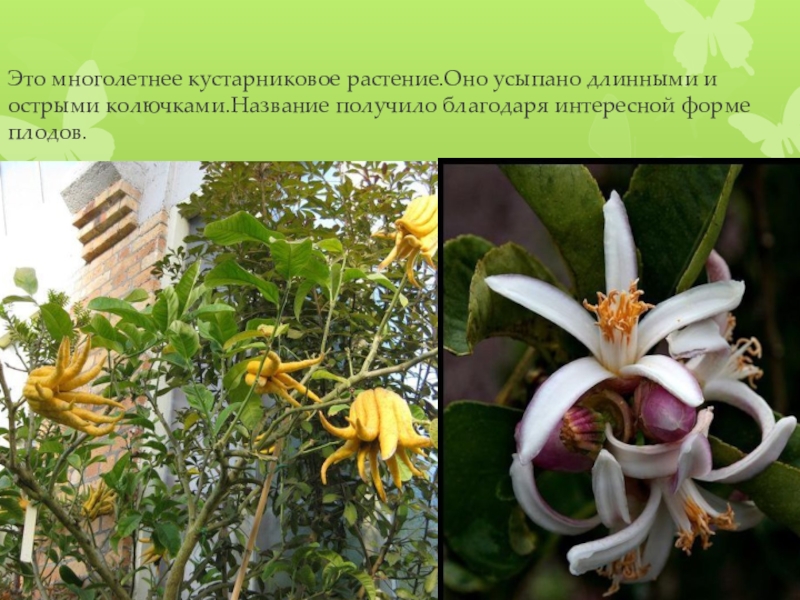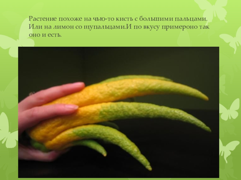 Слайд 3Растение похоже на чью-то кисть с большими пальцами.Или на лимон со