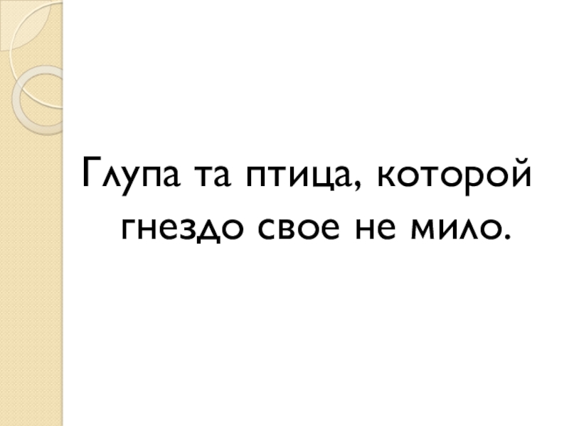 Слайд 1Глупа та птица, которой гнездо свое не мило.