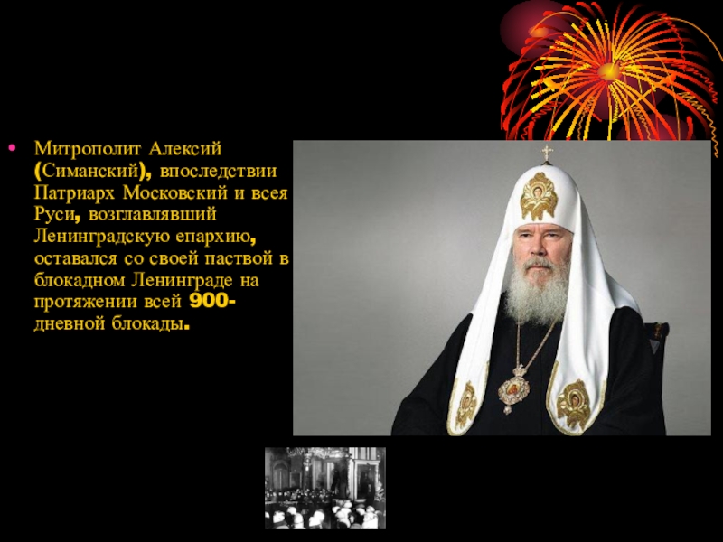 Слайд 22Митрополит Алексий (Симанский), впоследствии Патриарх Московский и всея Руси, возглавлявший Ленинградскую