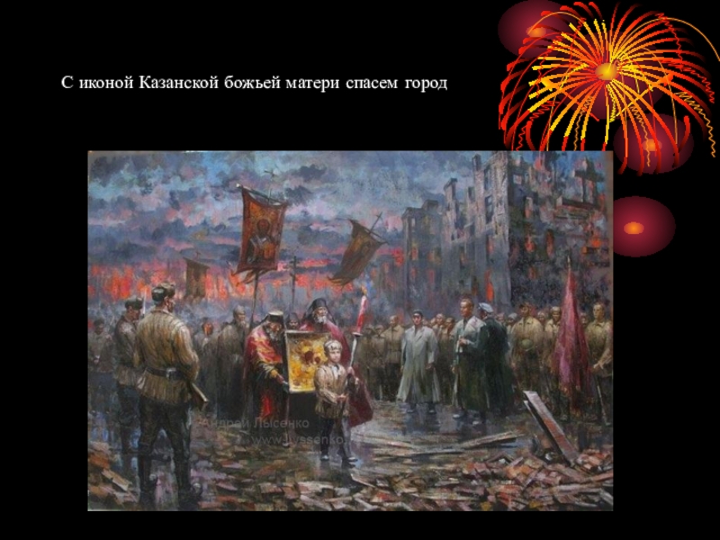 митрополита Сергия (Страгородского) и обещал исполнить все, что передал митрополит Илия, ибо не видел больше никакой возможности спасти положение. Все произошло так, как и было предсказано. Не было сил, чтобы удержать врага. Был страшный голод, ежедневно умирали тысячи людей. Из Владимирского собора вынесли Казанскую икону Божией Матери и обошли с ней крестным ходом вокруг Ленинграда – город был спасен. Но многим до сих пор непонятно, чем держался Ленинград, ведь помощи ему практически не было: то, что подвозили, было каплей в море. И тем не менее, город выстоял. Снова подтвердились слова, сказанные святителем Митрофаном (Воронежским) Петру I о том, что город святого апостола Петра избран Самой Божией Матерью, и пока Казанская икона в городе, и есть молящиеся, враг не может войти в город. Вот почему ленинградцы так почитают Казанскую икону Божией Матери. Она все время, от основания города была Заступницей его, да и всей России.