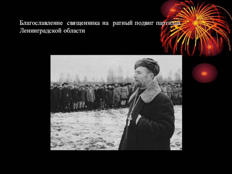 Слайд 12Благославление священника на ратный подвиг партизан Ленинградской области