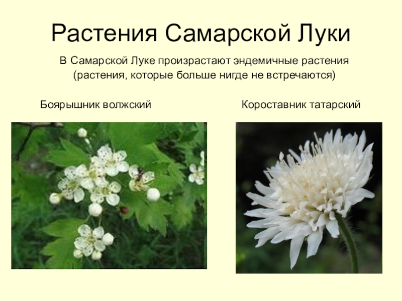 Растения Самарской ЛукиВ Самарской Луке произрастают эндемичные растения (растения, которые больше нигде не встречаются)  Боярышник волжский