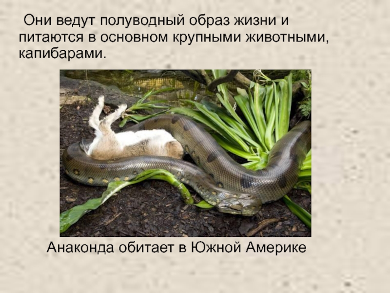 Слайд 31 Они ведут полуводный образ жизни и питаются в основном крупными животными,