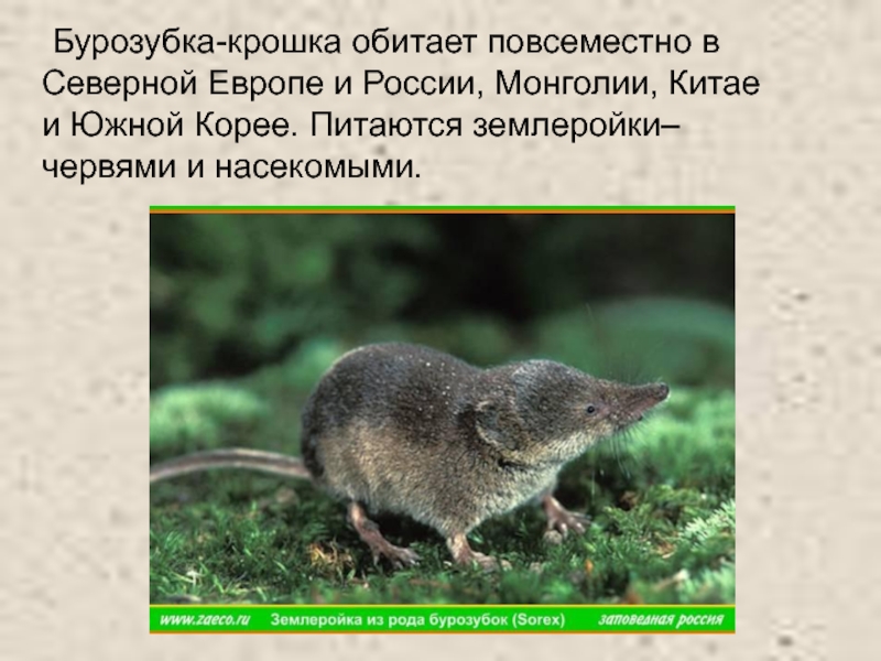 Слайд 11 Бурозубка-крошка обитает повсеместно в Северной Европе и России, Монголии, Китае и