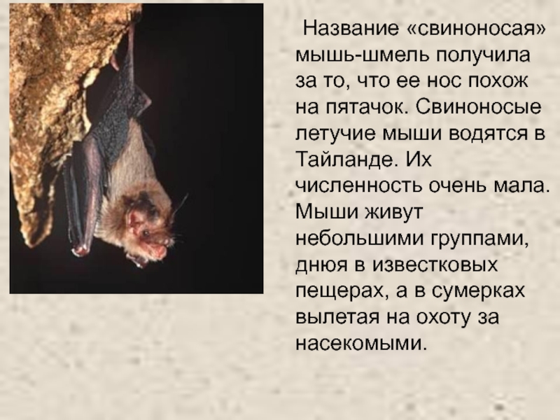 Слайд 9 Название «свиноносая» мышь-шмель получила за то, что ее нос похож на