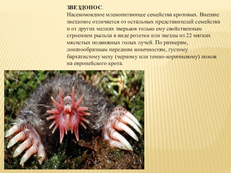 ЗВЕЗДОНОС. Насекомоядное млекопитающее семейства кротовых. Внешне звездонос отличается от остальных представителей семейства и от других мелких зверьков