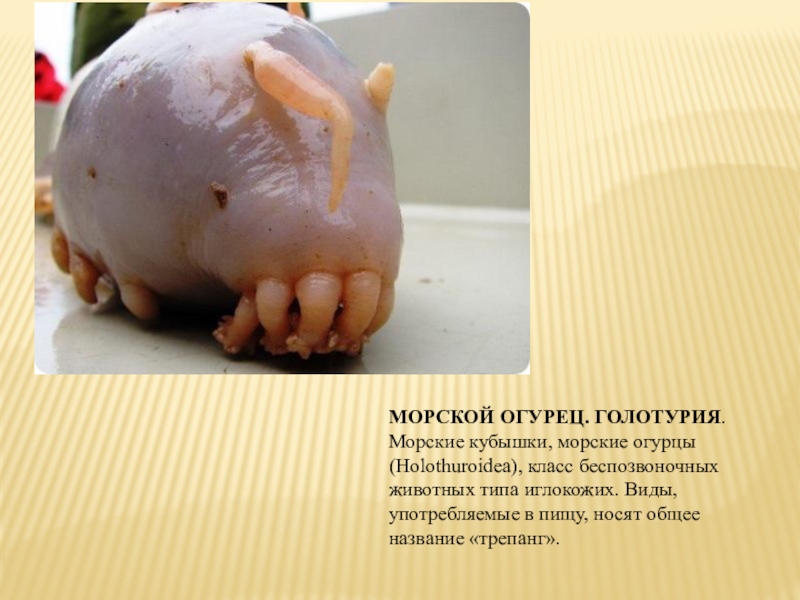 Слайд 2МОРСКОЙ ОГУРЕЦ. ГОЛОТУРИЯ. Морские кубышки, морские огурцы (Holothuroidea), класс беспозвоночных животных