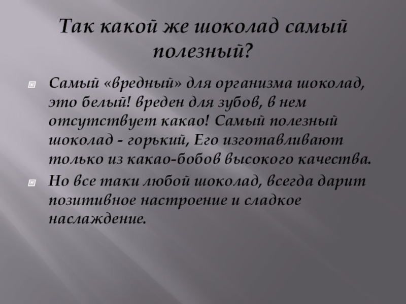 Это сайт презентаций, где можно хранить и обмениваться своими презентациями, докладами, проектами, шаблонами в формате PowerPoint с другими пользователями. Мы помогаем школьникам, студентам, учителям, преподавателям хранить и обмениваться учебными материалами.