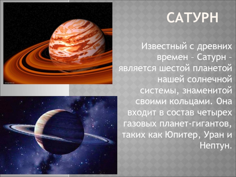 Известный с древних времен – Сатурн – является шестой планетой нашей