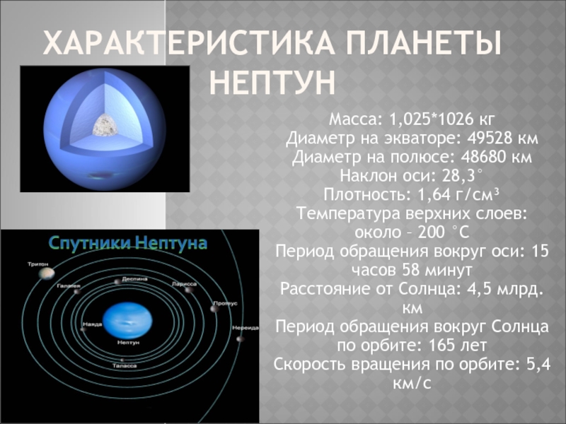 Слайд 22ХАРАКТЕРИСТИКА ПЛАНЕТЫ НЕПТУН