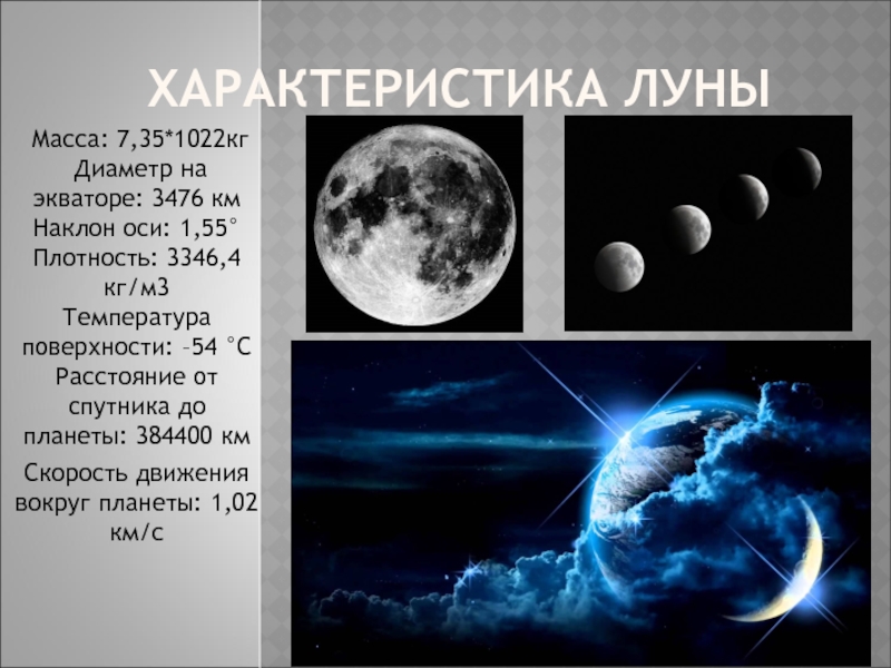 Слайд 12ХАРАКТЕРИСТИКА ЛУНЫ