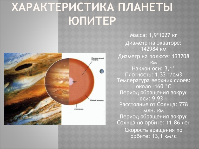 Слайд 16ХАРАКТЕРИСТИКА ПЛАНЕТЫ ЮПИТЕР