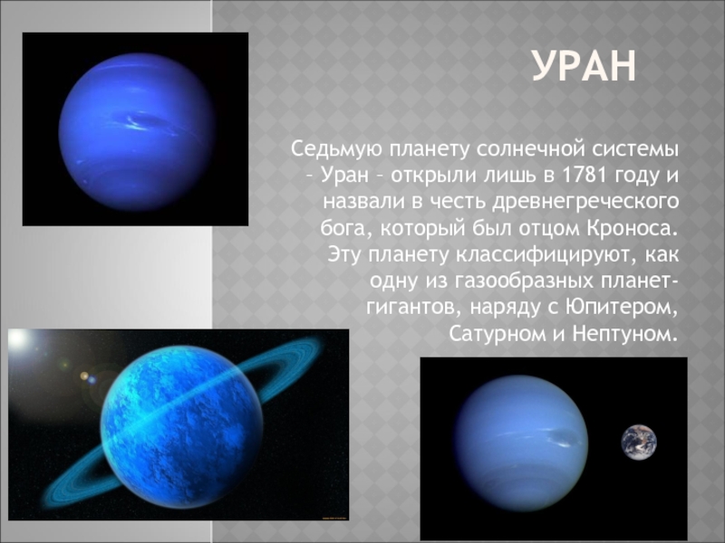 году и назвали в честь древнегреческого бога, который был отцом Кроноса. Эту планету классифицируют, как одну из газообразных планет-гигантов, наряду с Юпитером, Сатурном и Нептуном.